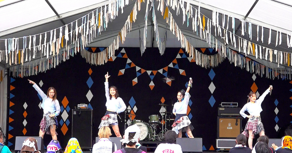 今回は総勢143名のミュージックプラネット参加アーティストが出演。やまぐち富士商ドーム内ステージとDolphin Thruの2箇所でパフォーマンスを披露しました。特にDolphin Thruは、新進気鋭の若手アーティストが多く登場するステージ。過去には羊文学や崎山蒼志などの人気アーティストも出演しました。また、実はミュージックプラネット参加アーティストの「WILD BUNCH FEST. 」への出演は3回目。2023年から3年連続で出演機会を提供しております。そんなステージで、ソロやユニット、グループ形式など、さまざまな形式でパフォーマンス。また、楽曲のジャンルもポップスからロックまで多種多様。それぞれのアーティストが個性を発揮しました。また、シンガーソングライターであるサカノウエヨースケ氏との共演も実現。それぞれのステージングで、会場を盛り上げました。